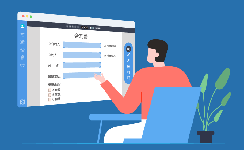 上傳PDF、編輯簽名位置、傳送文件,三步驟完成簽署文件,簽署者快速回簽,不受距離的限制。
