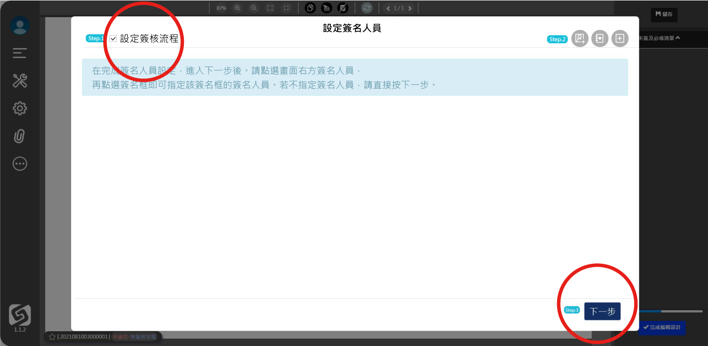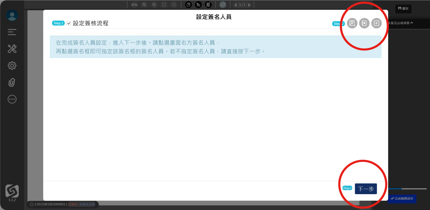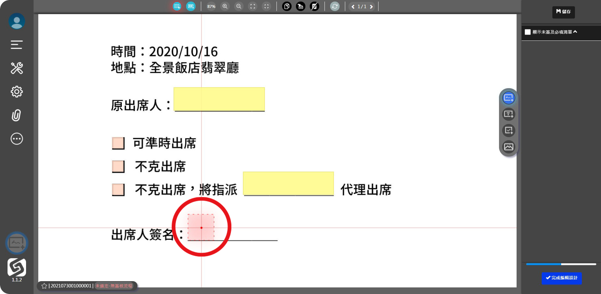 ● 選擇右列的人員,再點擊其簽名欄位,依此類推